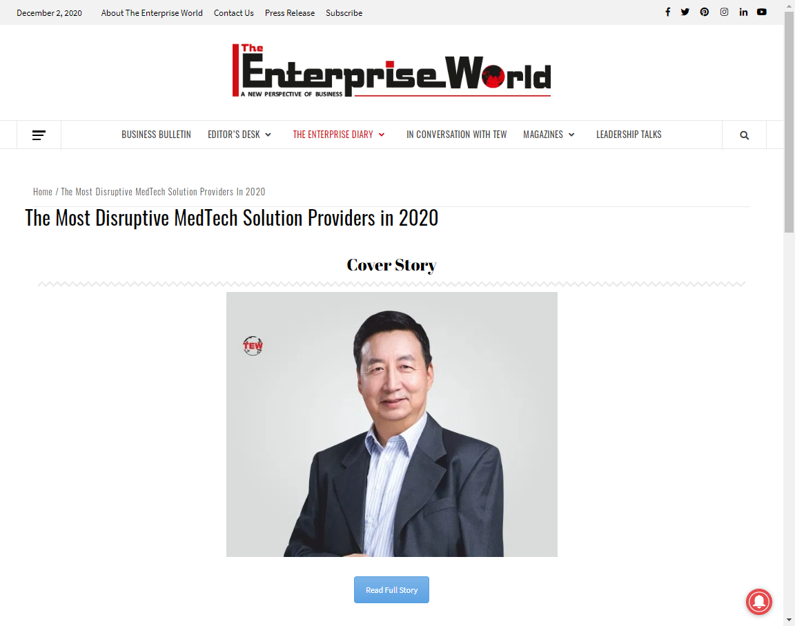 茵絡醫(yī)療:《The Enterprise World》2020最具突破性醫(yī)療企業(yè)