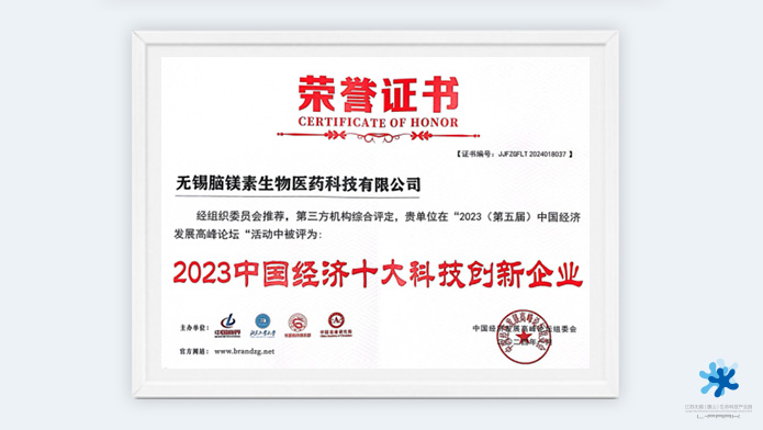 腦鎂素生物:獲評“2023中國經(jīng)濟十大科技創(chuàng)新企業(yè)”